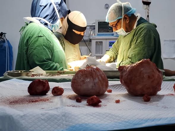 البروفيسور توفيق البصيلي يجري عملية نوعية ومعقدة جدا وعالية الخطورة بمستشفى سيبلاس باستئصال اورام ليفية كبيرة ومتعددة يشغل الحوض كامل مع البطن لفتاة في السبعة والعشرين من عمرها.