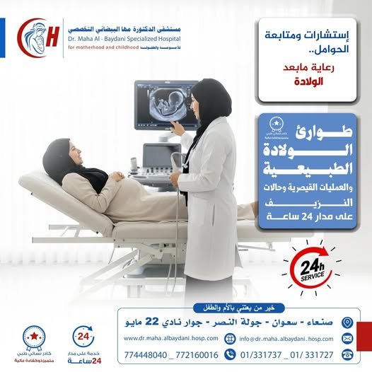 يواصل مستشفى الدكتورة مها البيضاني التخصصي للأمومة والطفولة تقديم خدمات طبية متميزة، ليُرسّخ مكانته كأحد أبرز الصروح الطبية في العاصمة صنعاء، ومن المستشفيات القليلة التي تشجع على الولادة الطبيعية وتوفر بيئة آمنة للأمهات والأطفال.