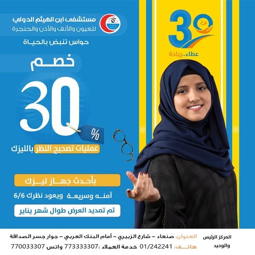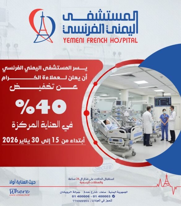 في إطار التزامه الدائم بتقديم أعلى مستويات الرعاية الصحية وفق أحدث المعايير الطبية العالمية، يسر المستشفى اليمني الفرنسي أن يعلن لعملائه الكرام عن إطلاق عرض خاص يتمثل في تخفيض بنسبة…